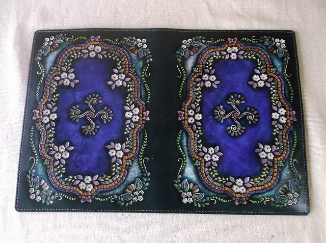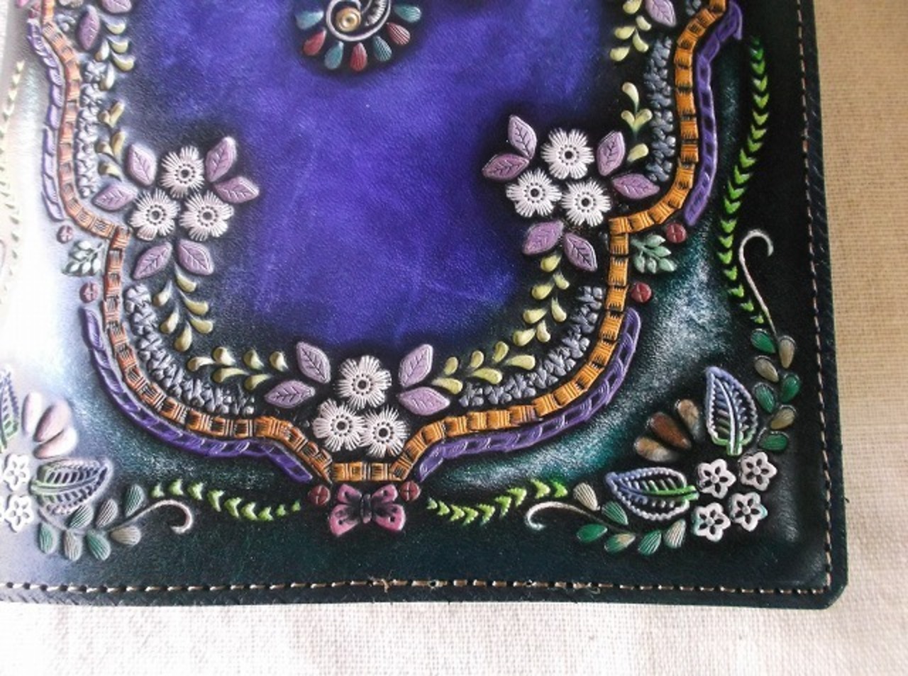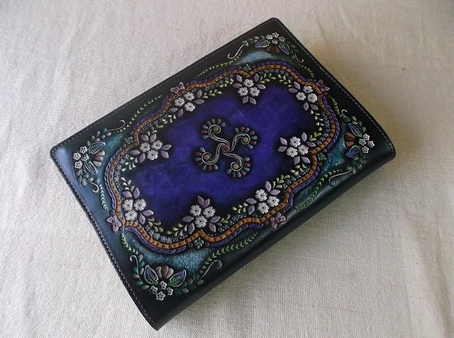 刻印配列や染色はさることながら、使い込むほどに、経年変化で艶が増しより使いやすくなることがほかの素材のブックカバーにはない最大の特徴だと思います。