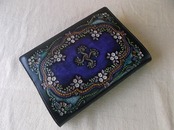 拭き染めとはベースになる色で一度染めた後、刻印の輪郭をテルテル坊主のような筆で適度にぼかす技法です。そうすることのより、アンティーク風になり暖かい印象を与えています。