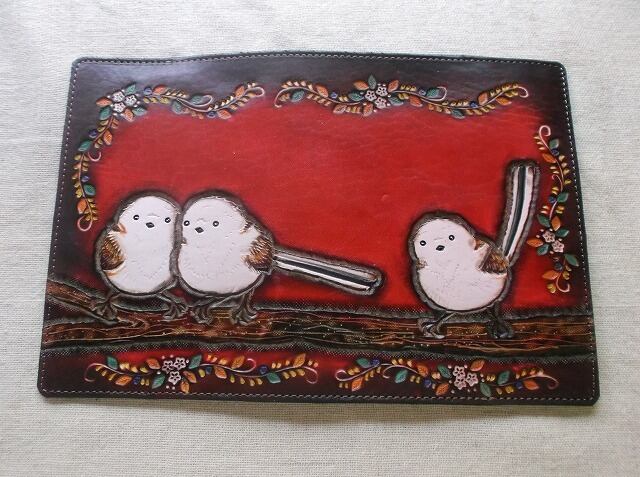 表装には、刻印を排列したのちに拭き染めで自家染色を施しています。