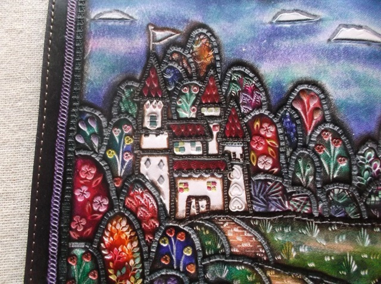 そのため、一枚一枚デザインを変えて刻印を配列し、染料も一枚づつ調合して染色することにこだわっています。