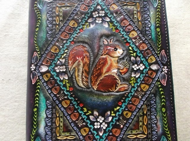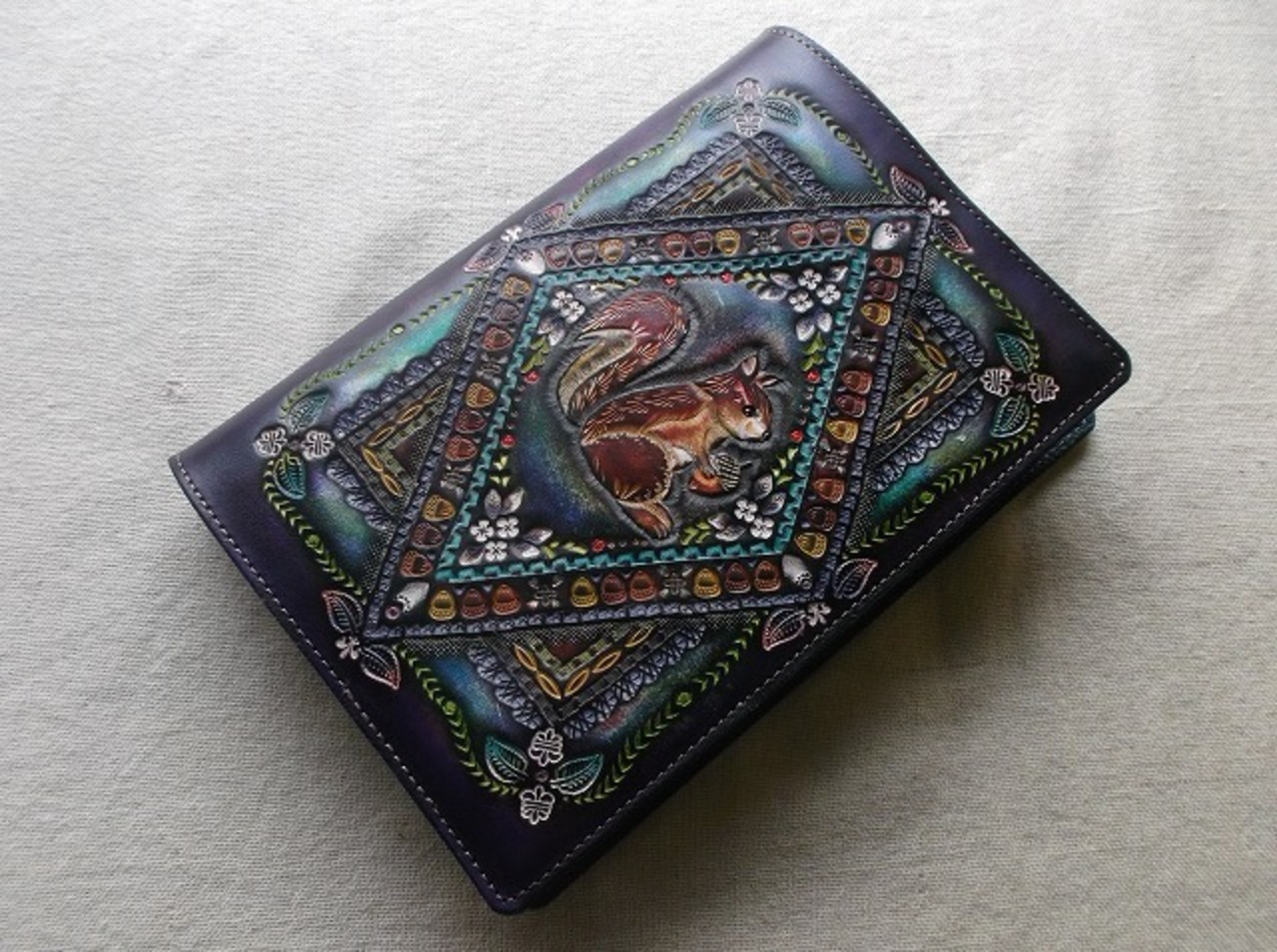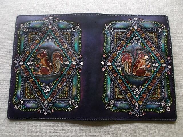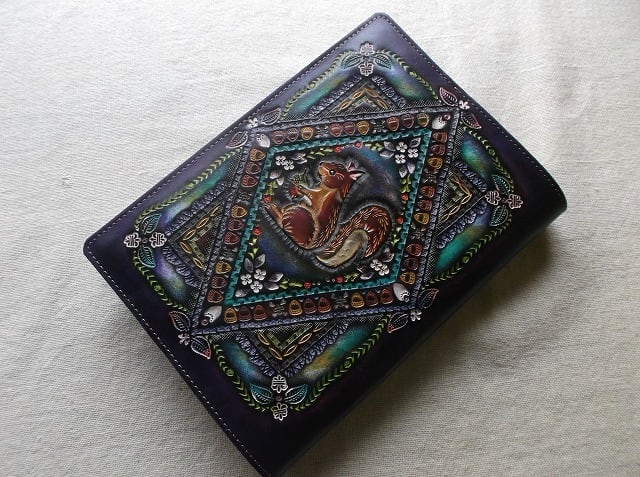 刻印配列や染色はさることながら、使い込むほどに、経年変化で艶が増しより使いやすくなることがほかの素材のブックカバーにはない最大の特徴だと思います。