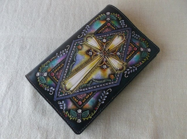 新書サイズの牛革製ブックカバーです。
