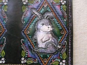 表装には、刻印を排列したのちに拭き染めで自家染色を施しています。