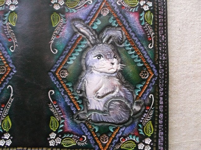 染色も拭き染めという技法を用い、刻印の輪郭を適度にぼかすことで暖かい印象になります。