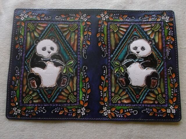 表装には、刻印を排列したのちに拭き染めで自家染色を施しています。