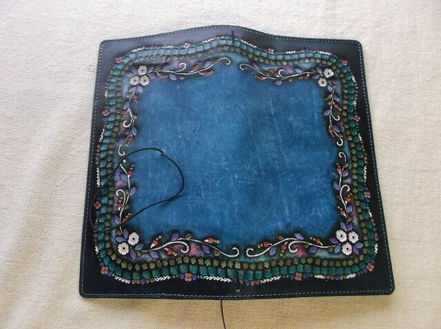 刻印配列や染色はさることながら、使い込むほどに、経年変化で艶が増しより使いやすくなることがほかの素材のブックカバーにはない最大の特徴だと思います。