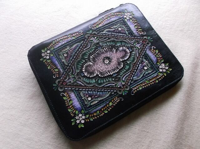 レザー手帳カバーA5サイズ ラウンドファスナータイプ 拭き染め&刻印