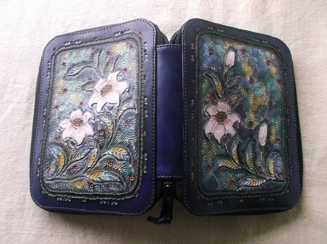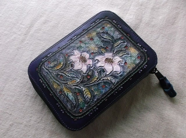 ※天然素材の革を自社で染色しておりますので、革特有の子傷やタンポによる色むらなどがあることがございます。また、刻印を打ち込んだ後に染料を落とし込むので、革の裏まで染料が浸透しシミのように見える事がございます。それらは技法上の特性であるため完全に防ぐことはできません。気になる方は購入をお控えください。