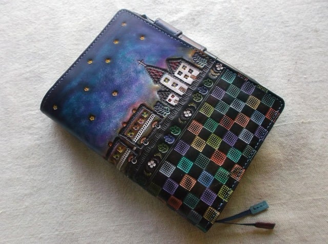 そのため、一枚一枚デザインを変えて刻印を配列し、染料も一枚づつ調合して染色することにこだわっています。