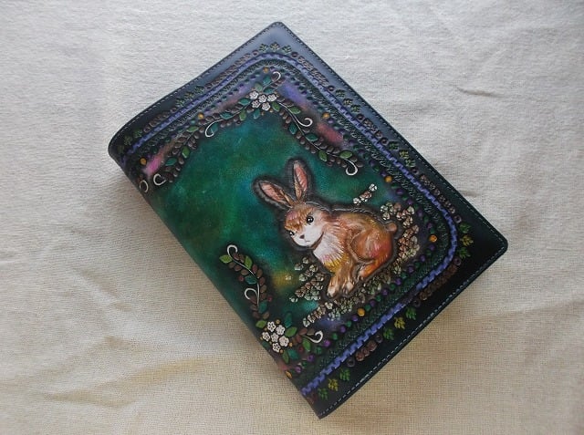 刻印配列や染色はさることながら、使い込むほどに、経年変化で艶が増しより使いやすくなることがほかの素材のブックカバーにはない最大の特徴だと思います。