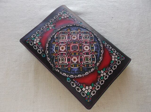 単行本サイズブックカバー 拭き染め&刻印 牛革