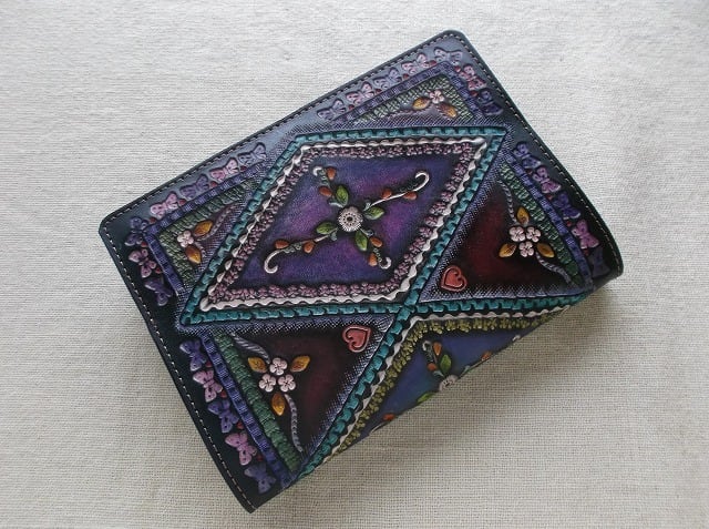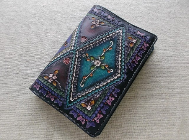 文庫サイズブックカバー 拭き染め&刻印 牛革