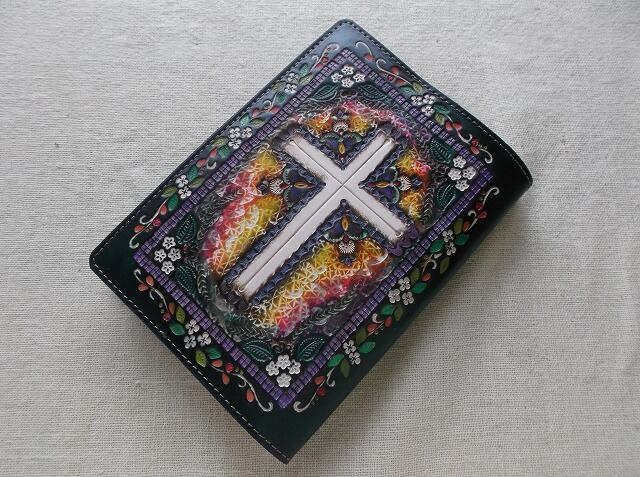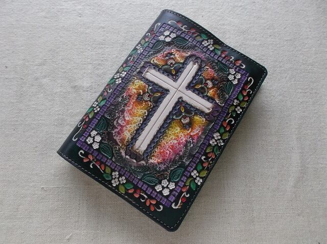 文庫サイズブックカバー 拭き染め&刻印 牛革