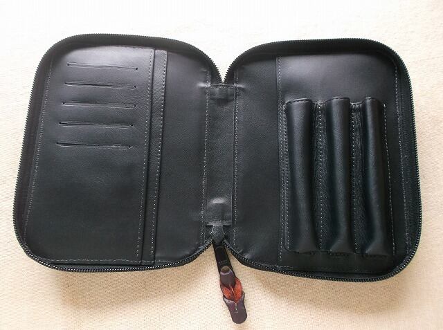 A6サイズマルチケース ラウンドファスナータイプ 拭き染め 牛革