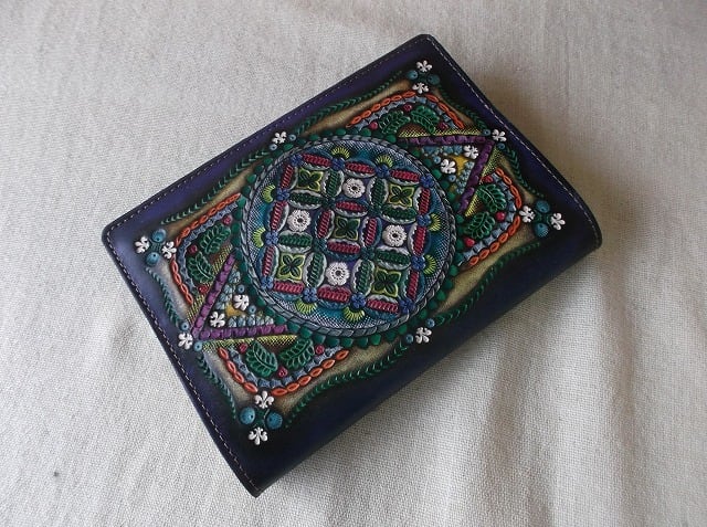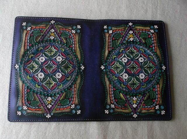 文庫サイズブックカバー 拭き染め&刻印 牛革