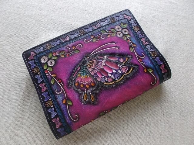 文庫サイズブックカバー 拭き染め&刻印 牛革