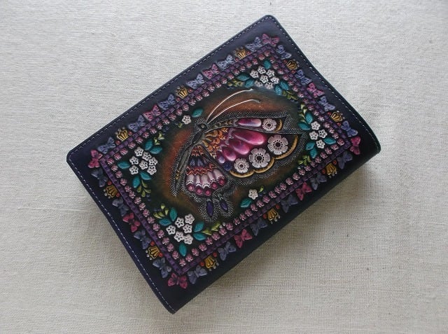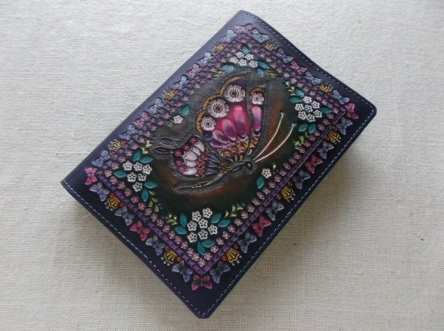 文庫サイズブックカバー 拭き染め&刻印 牛革