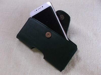 牛革のスマホケースです。ベルトに通して使うベルトポーチタイプになります。