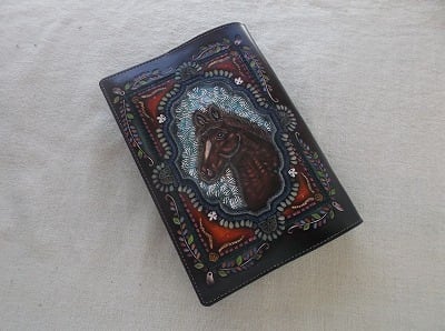 刻印配列や染色はさることながら、使い込むほどに、経年変化で艶が増しより使いやすくなることがほかの素材のブックカバーにはない最大の特徴だと思います。